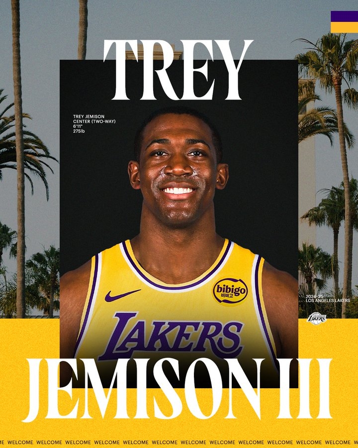 1月17日訊 此前,湖人官宣正式以雙向合同簽下中鋒特雷-杰米森。