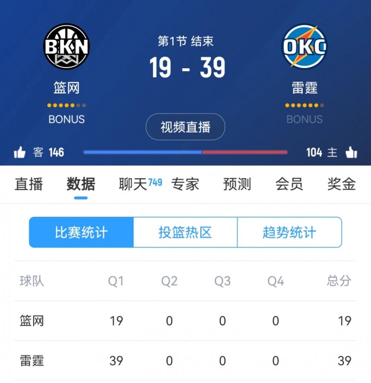 第一節(jié),雷霆攻防兩端壓制對(duì)手,單節(jié)以39-19領(lǐng)先籃網(wǎng)多達(dá)20分,雷霆射手以賽亞-喬首節(jié)飆中4記三分獨(dú)得12分。
