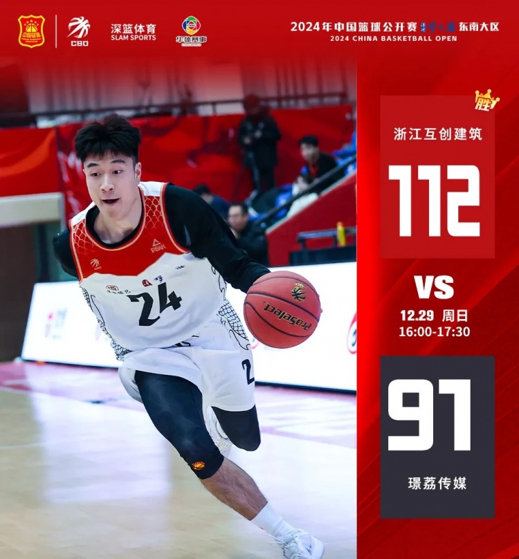 比賽開始,浙江互創(chuàng)建筑22號劉卓接8號陸曉龍助攻,2分命中,幫助球隊拿下第一分,15號郭宗儒在防守端表現(xiàn)積極。璟荔傳媒9號湯序則運球快下進攻,同樣穩(wěn)穩(wěn)命中還以顏色。浙江互創(chuàng)建筑22號劉卓、24號榮家浩中在隊友配合下屢次建功,迅速拉開雙方分差。下半場比賽,璟荔傳媒7號湯培欽拼搶積極,全力進攻穩(wěn)住局勢,恰逢浙江互創(chuàng)建筑進攻端失準(zhǔn),湯培欽一度將分差縮小到5分,直接逼停浙江互創(chuàng)建筑。浙江互創(chuàng)建筑暫停過后重新調(diào)整,穩(wěn)扎穩(wěn)打,全隊5人得分上雙,持續(xù)輸送火力,璟荔傳媒再未創(chuàng)造領(lǐng)先優(yōu)勢。最終浙江互創(chuàng)建筑112-91戰(zhàn)勝對手,2024年中國籃球公開賽洋河夢之藍東南大區(qū)賽季軍誕生。