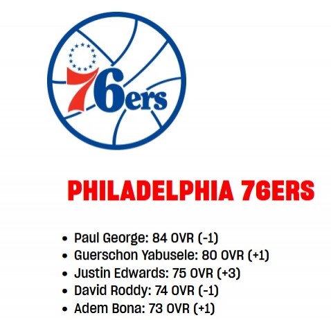 發(fā)布時(shí)間:2025年02月14日 15:54點(diǎn)擊:欄目:籃球新聞 2月14日訊 NBA2K官方更新了各隊(duì)球員的能力值,76人球員變化情況如下:喬治,84(-1)亞布塞萊,80(+1)賈斯汀-愛德華茲,75(+3)大衛(wèi)-羅迪,74(-1)阿德姆-博納,73(+1) 除特別注明外,本站所有內(nèi)容均為九球直播整理排版,轉(zhuǎn)載請(qǐng)注明出處:76人2K能力值更新:保羅-喬治-1至84 亞布塞萊+1升上80 本文標(biāo)簽: nba 籃球 76人 喬治