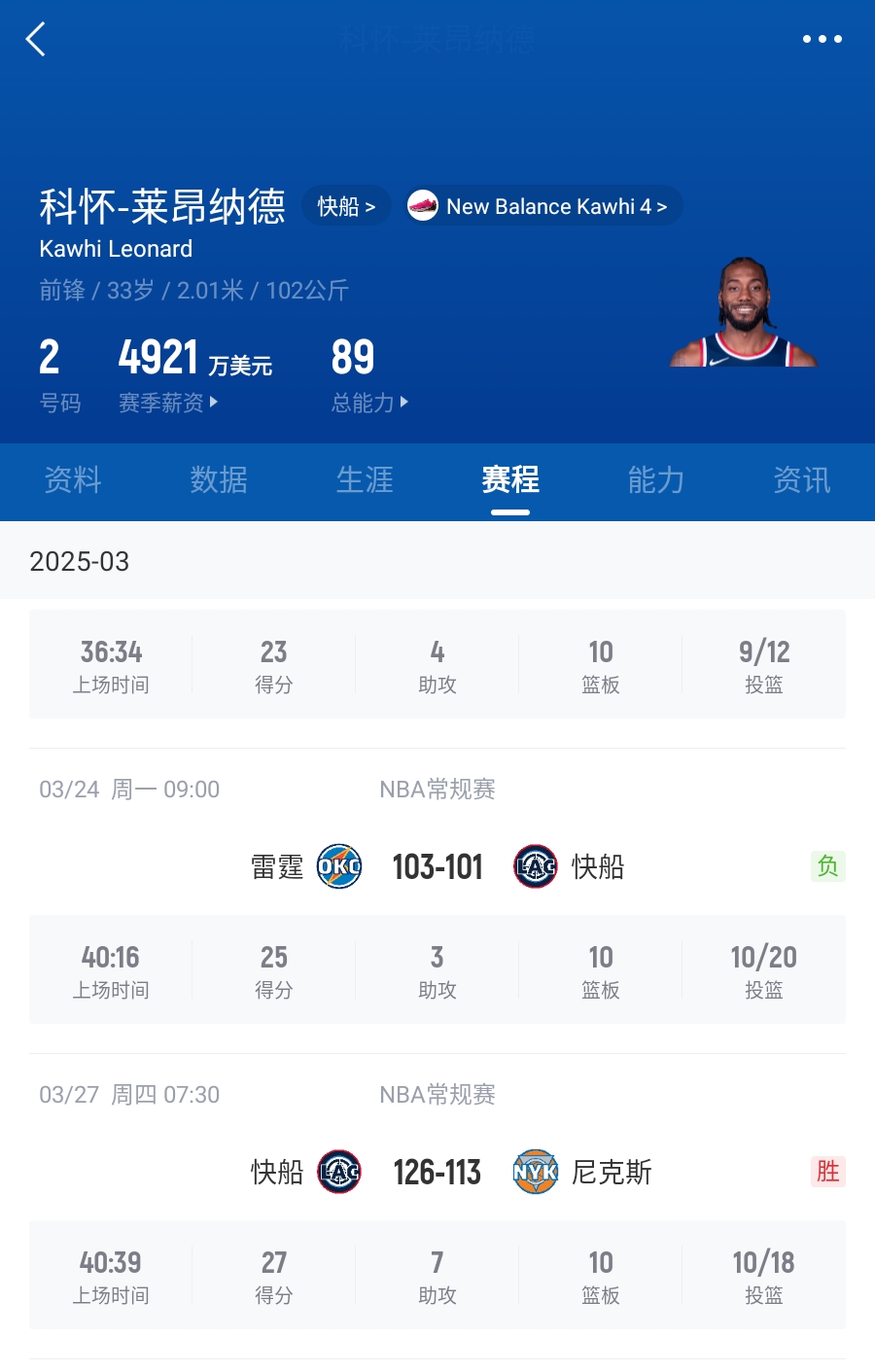 發(fā)布時(shí)間:2025年03月27日 12:05點(diǎn)擊:欄目:籃球新聞 除特別注明外,本站所有內(nèi)容均為九球直播整理排版,轉(zhuǎn)載請(qǐng)注明出處:扛得住嗎萊昂納德連續(xù)2場(chǎng)比賽出戰(zhàn)時(shí)間超過40分鐘! 本文標(biāo)簽: 籃球 nba 快船 萊昂納德