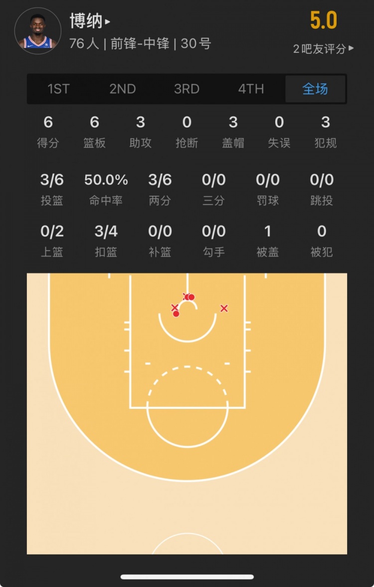 76人41號秀 阿德姆-博納 登場22.6分鐘
