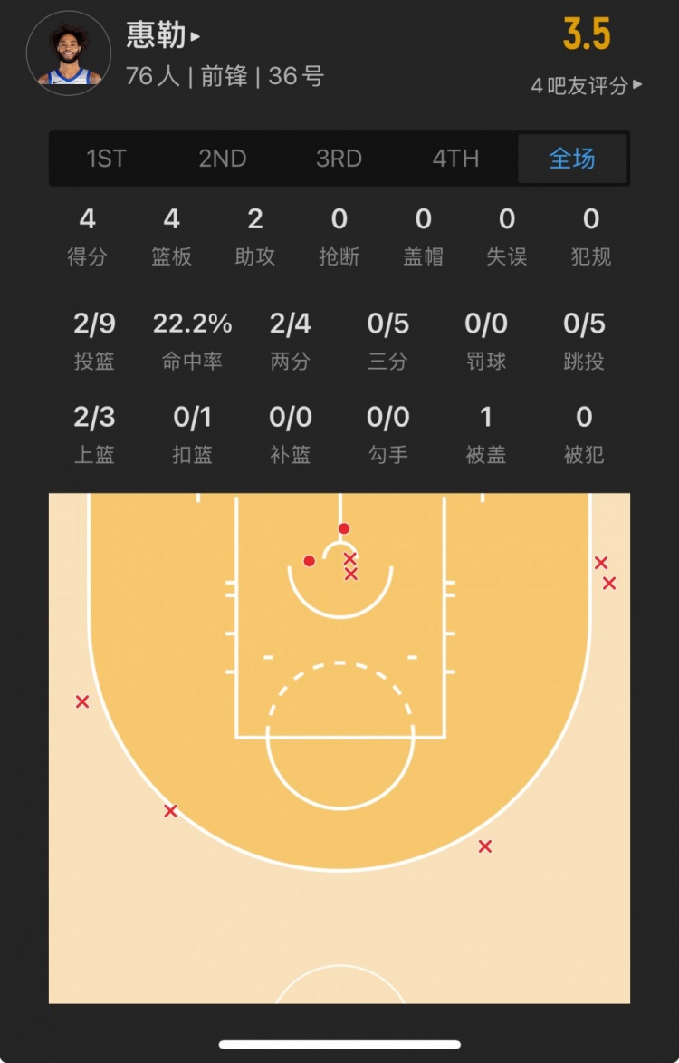 76人落選秀 菲利普-惠勒 登場15.5分鐘
