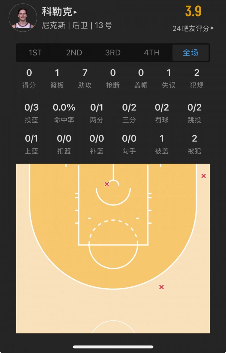 尼克斯34號秀 泰勒-科勒克 登場18.5分鐘