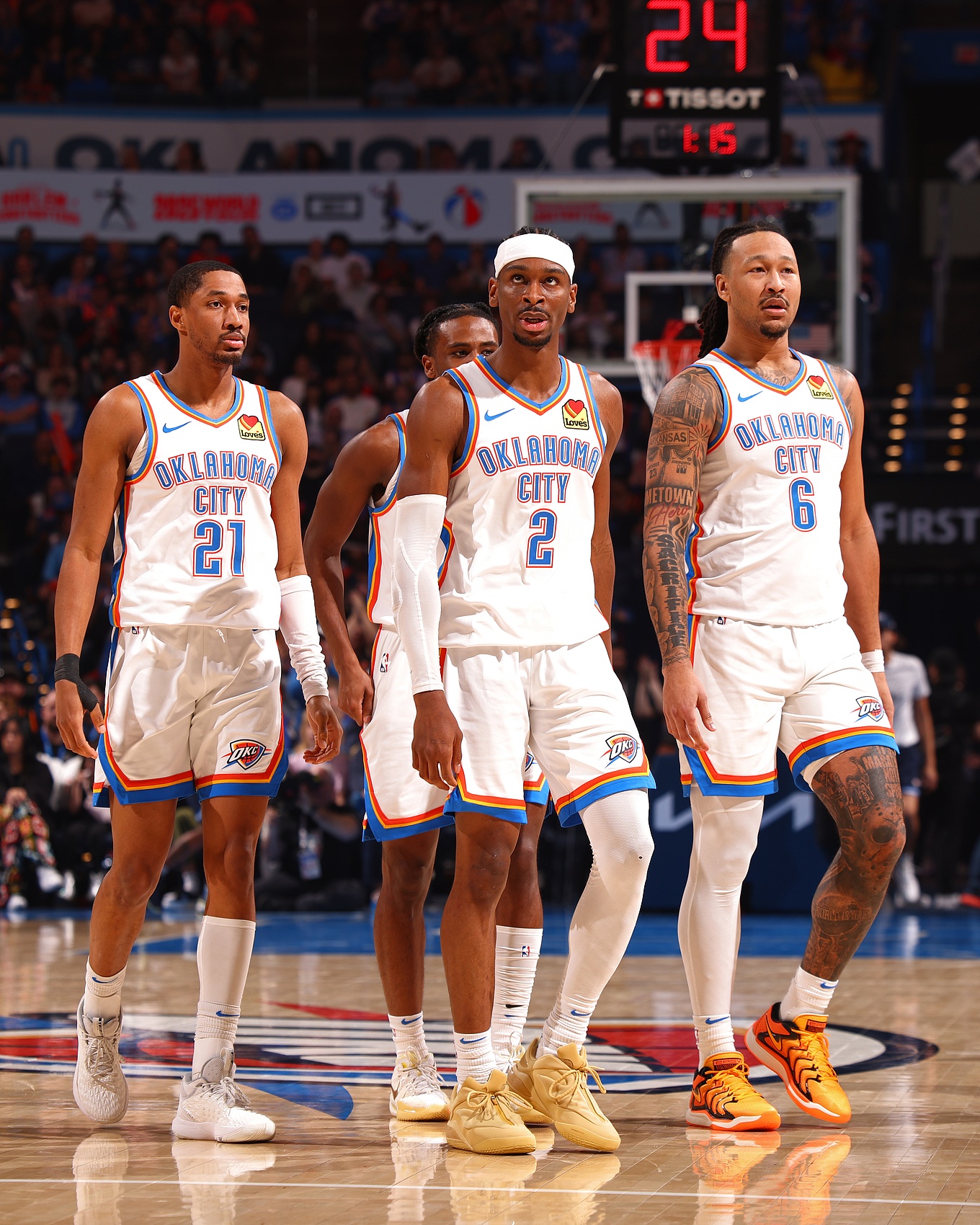 克拉姆:這是一個(gè)非常艱難的選擇,因?yàn)榉朗匦逝琶拔宓那蜿?duì)——雷霆隊(duì)、洛杉磯快船隊(duì)、奧蘭多魔術(shù)隊(duì)、休斯敦火箭隊(duì)和波士頓凱爾特人隊(duì)——都非常高效,這要?dú)w功于團(tuán)隊(duì)努力和教練組,而不是由某一位突出的防守者所領(lǐng)導(dǎo)的。在沒(méi)有任何明顯的受歡迎人選的情況下,我想知道多特是否能像2021-22賽季的馬庫(kù)斯-斯瑪特一樣,作為雷霆隊(duì)統(tǒng)治力的代表贏得該獎(jiǎng)項(xiàng)。但內(nèi)線球員當(dāng)選年度最佳防守球員的可能性要大得多(也更容易理解),這就是為什么莫布里和格林現(xiàn)在是主要的候選人。