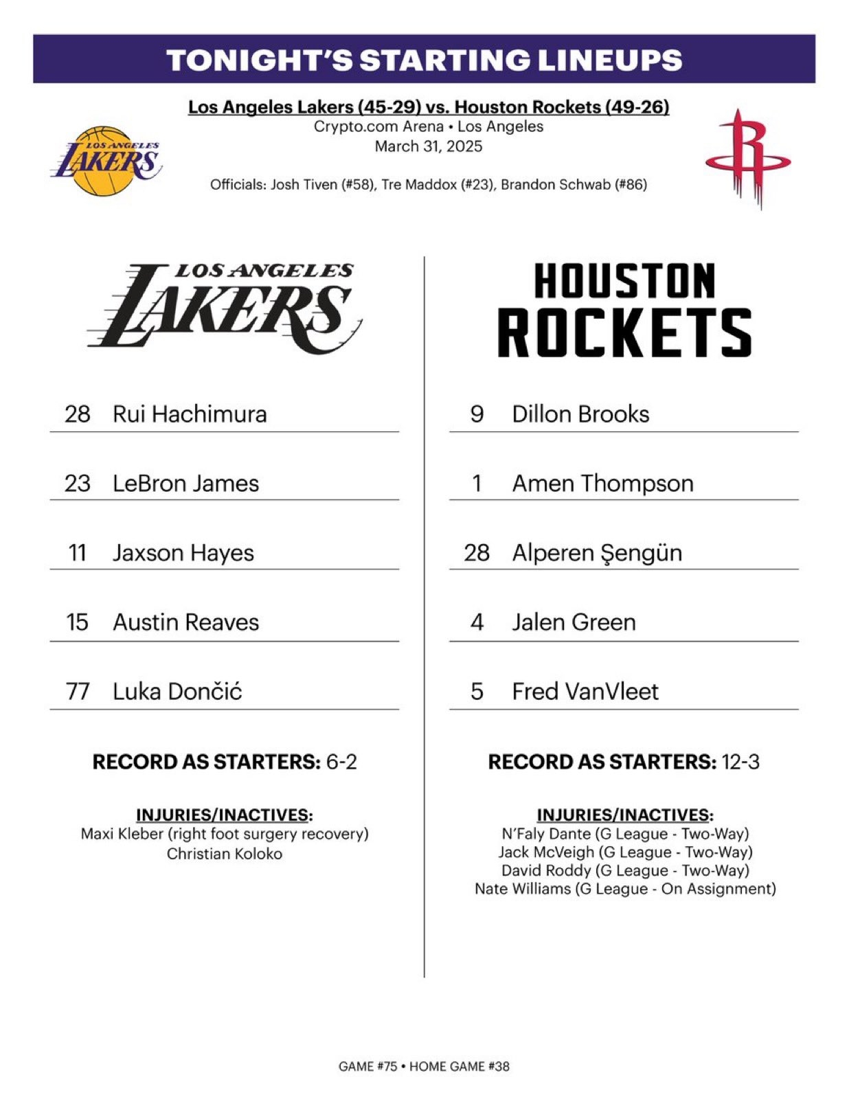 04月01日訊 NBA常規(guī)賽,火箭vs湖人。