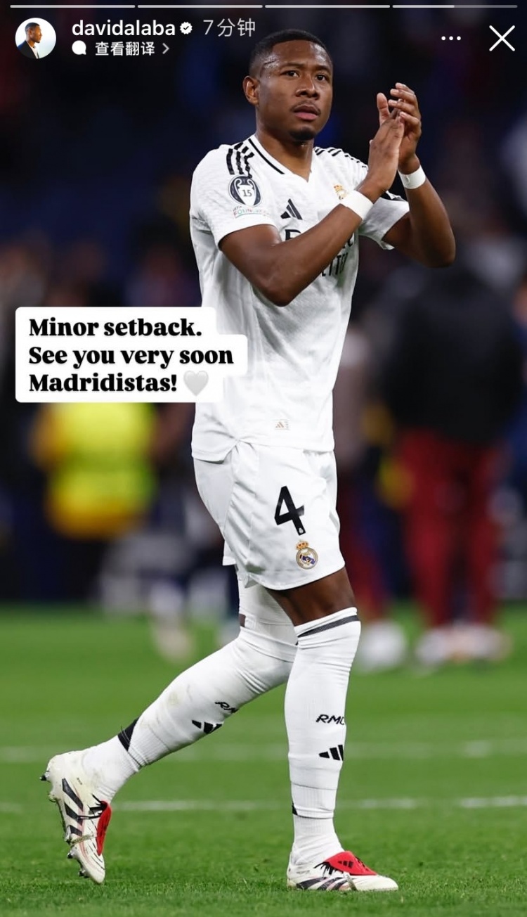 阿拉巴寫道:只是一次小小的挫折,馬德里主義者們,我很快就會再見到你們!