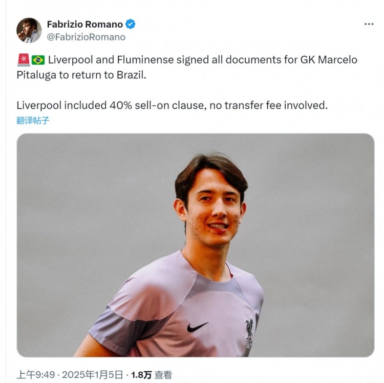 除特別注明外,本站所有內(nèi)容均為九球直播整理排版,轉(zhuǎn)載請注明出處:羅馬諾:利物浦門將皮塔盧加回歸弗魯米嫩塞,零轉(zhuǎn)會(huì)費(fèi)+40%二轉(zhuǎn)