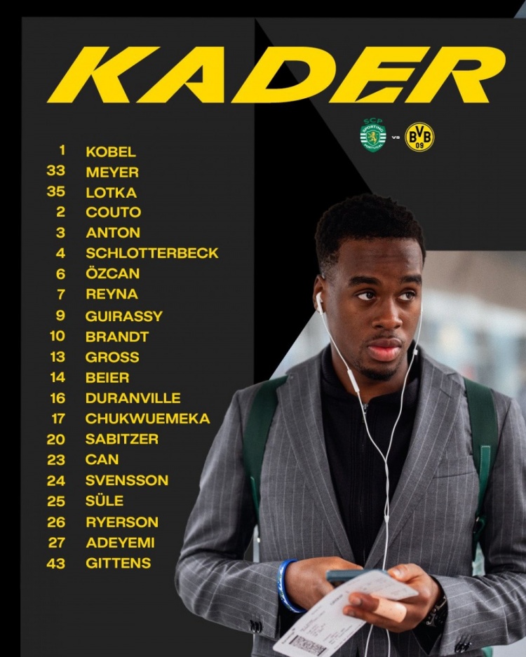2月10日訊 多特公布了球隊(duì)對(duì)陣葡萄牙體育的歐冠比賽的球員名單。