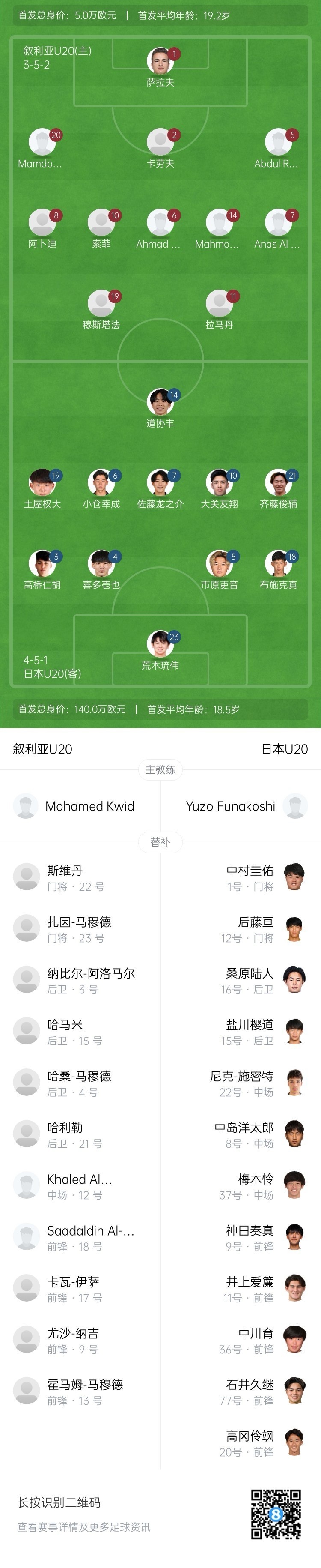 2月17日訊 北京時(shí)間今天下午15:00,U20亞洲杯D組第二輪敘利亞U20vs日本U20的比賽將打響。