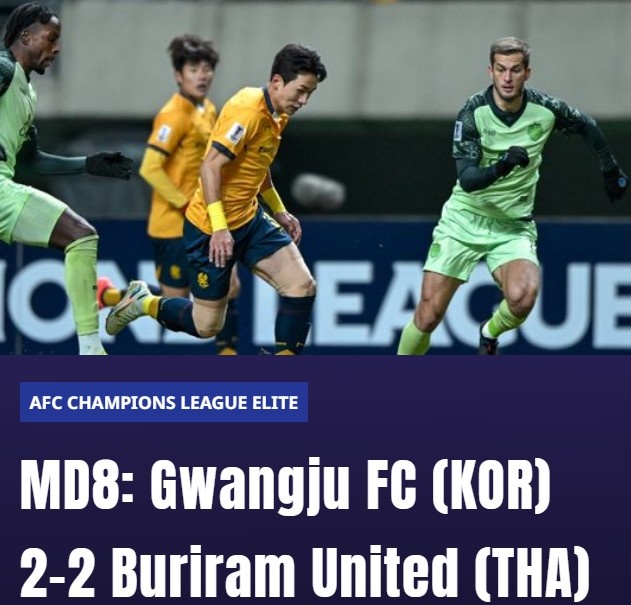2月18日訊 北京時間今晚結(jié)束的亞冠精英聯(lián)賽東亞區(qū)聯(lián)賽階段第8輪,光州FC主場2-2戰(zhàn)平武里南聯(lián)。