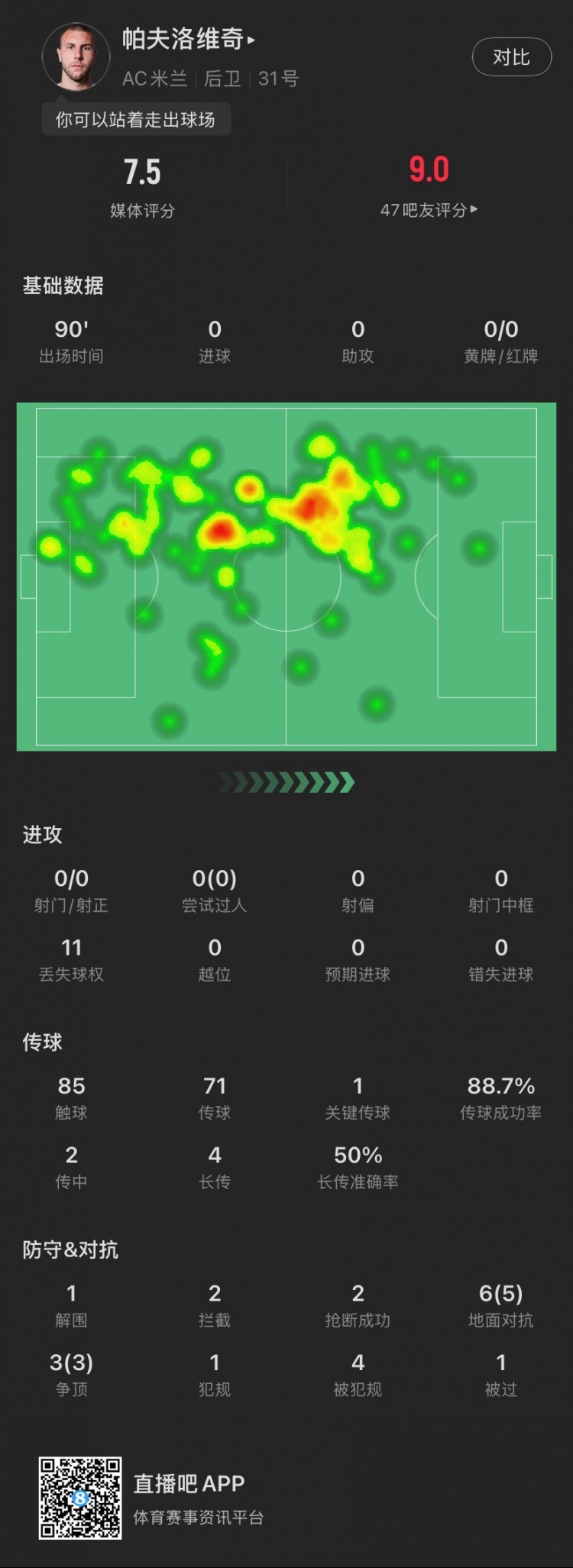 除特別注明外,本站所有內(nèi)容均為九球直播整理排版,轉(zhuǎn)載請注明出處:盡力局!帕夫洛維奇本場:9次對抗成功8次,貢獻(xiàn)1解圍2攔截2搶斷