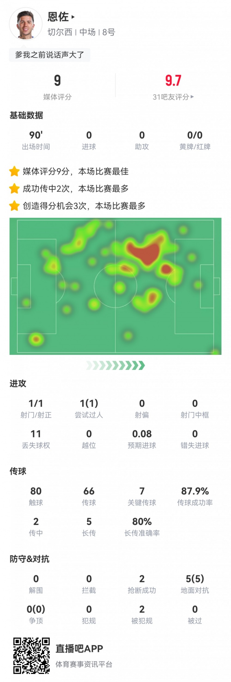 發(fā)布時間:2025年02月26日 06:50點擊:欄目:足球新聞 2月26日訊 本輪英超,切爾西4-0南安普頓。此役恩佐首發(fā)90分鐘被換下,球員全場重點數(shù)據(jù)如下↓1射1正1次過人11次丟失球權(quán)預期進球0.0880次觸球傳球成功率87.9%7次關(guān)鍵傳球5次長傳成功4次2次搶斷5次對抗全部成功評分9.0全場最高 除特別注明外,本站所有內(nèi)容均為九球直播整理排版,轉(zhuǎn)載請注明出處:戰(zhàn)神!恩佐數(shù)據(jù):7次關(guān)鍵傳球,5次對抗全成功,評分9.0全場最高 本文標簽: 足球 英超 切爾西 南安普頓