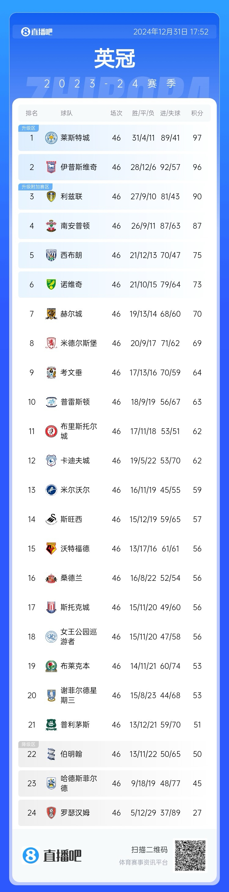 發(fā)布時(shí)間:2024年12月31日 19:16點(diǎn)擊:欄目:足球新聞 除特別注明外,本站所有內(nèi)容均為九球直播整理排版,轉(zhuǎn)載請(qǐng)注明出處:玩砸了?普利茅斯上賽季1分優(yōu)勢(shì)驚險(xiǎn)保級(jí),本賽季請(qǐng)魯尼半程墊底 本文標(biāo)簽: 足球 英超 曼聯(lián)
