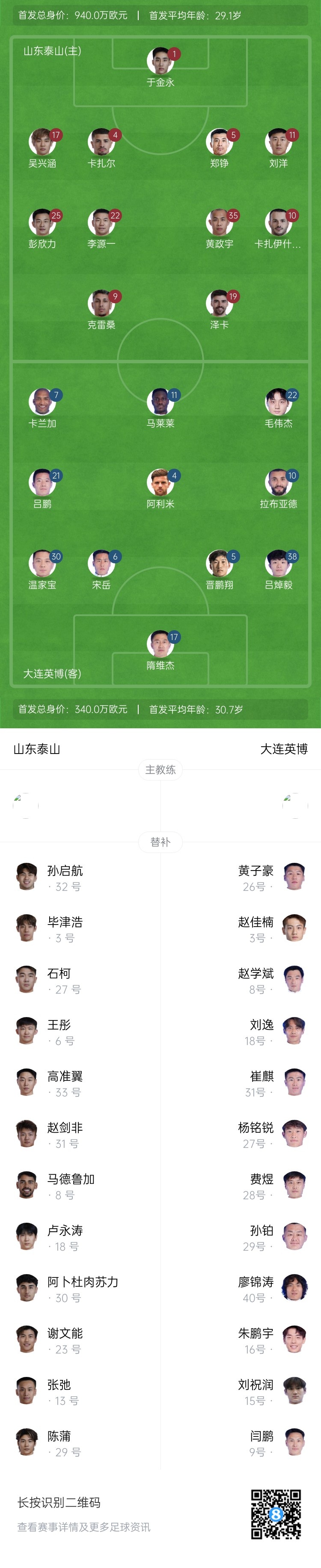 目前兩隊(duì)的首發(fā)名單已經(jīng)公布,大連英博方面,上周隨國(guó)青結(jié)束U20亞洲杯征程的毛偉杰進(jìn)入到首發(fā)名單當(dāng)中,他將上演中超首秀。