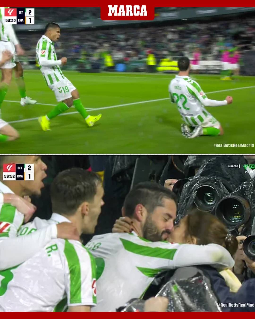 對鏡頭撒狗糧!伊斯科慶祝對皇馬進(jìn)球,滑軌后親吻妻子薩拉