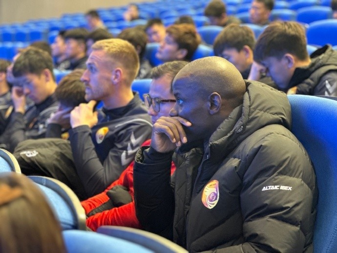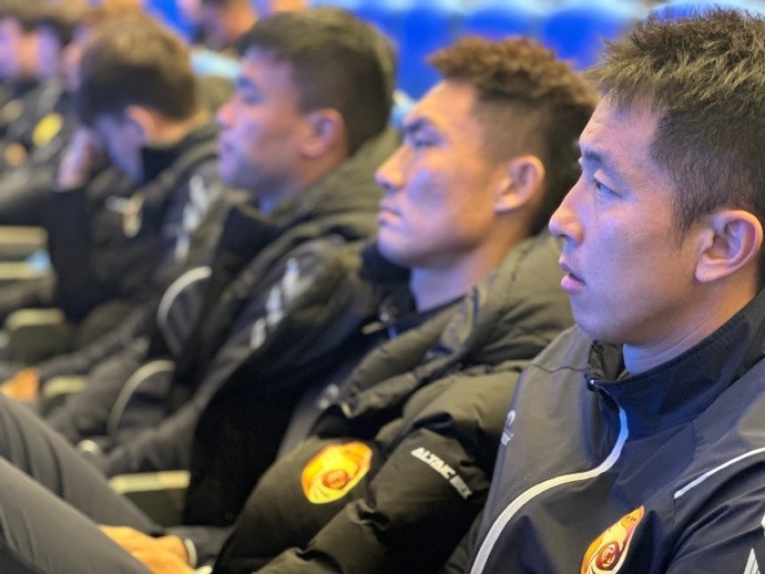 最后,現(xiàn)役中甲聯(lián)賽裁判監(jiān)督尹航進行了職業(yè)聯(lián)賽判罰統(tǒng)一尺度宣講。他的宣講以文字結(jié)合過往實戰(zhàn)視頻案例的形式展現(xiàn),給隊員們留下了深刻印象。