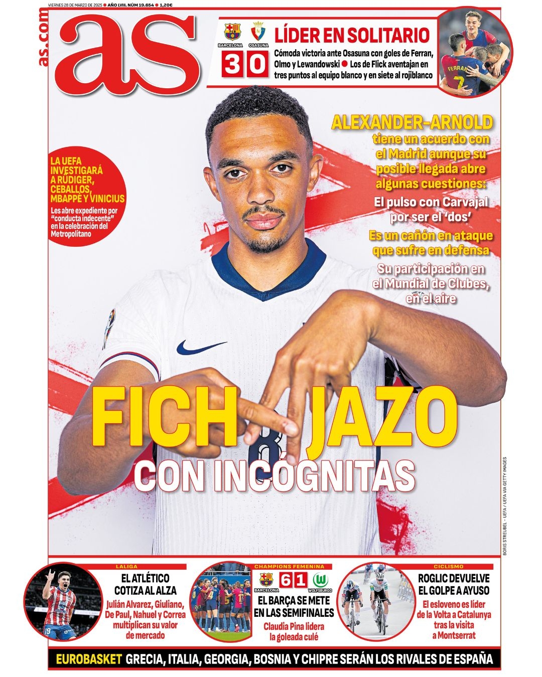 03月28日訊 阿斯報(bào)頭版報(bào)道,阿諾德已經(jīng)與皇馬達(dá)成協(xié)議。