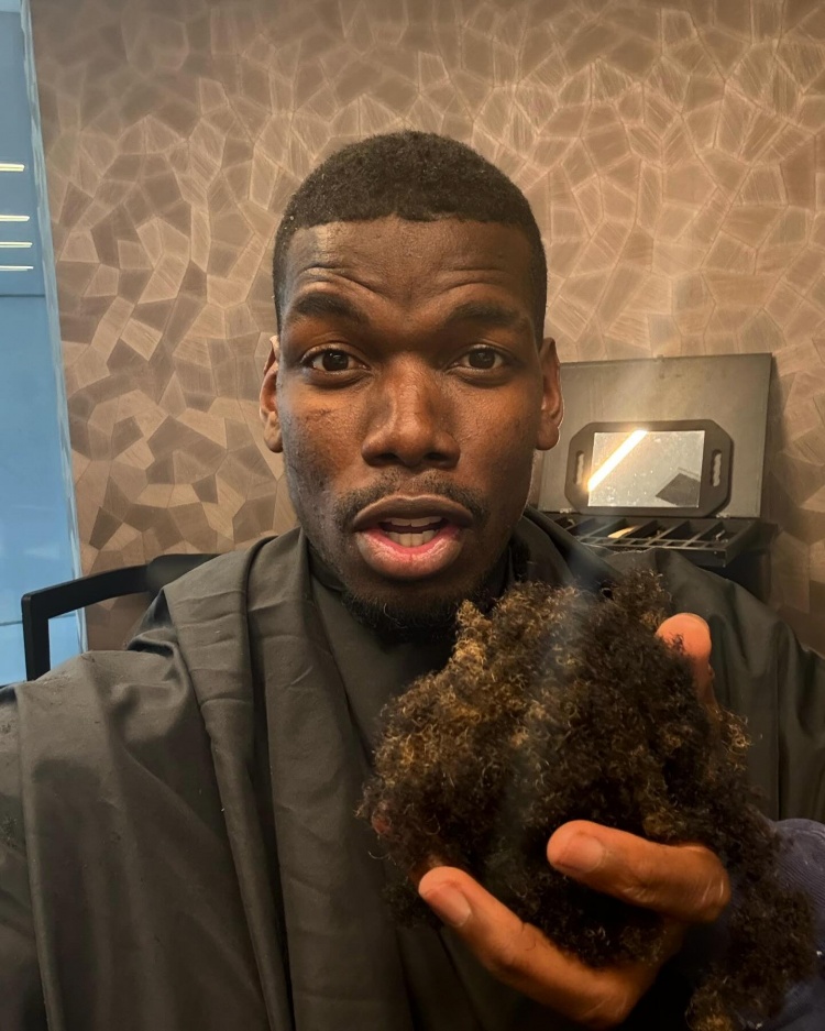 博格巴社媒曬出自己坐在理發(fā)椅子上的照片,他的手里拿著一大團(tuán)剪下的頭發(fā),配文:“新發(fā)型還是舊發(fā)型,你們更喜歡哪一個?”