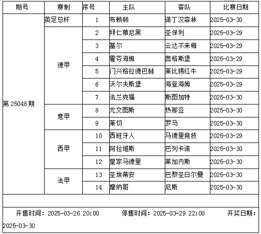 本周末,歐洲各大聯(lián)賽陸續(xù)開打。傳足勝負(fù)彩游戲第25048期競猜對陣中,拜仁、尤文、馬競和皇馬陸續(xù)出戰(zhàn)。國際比賽日后,需多留意“FIFA病毒”對俱樂部的影響。