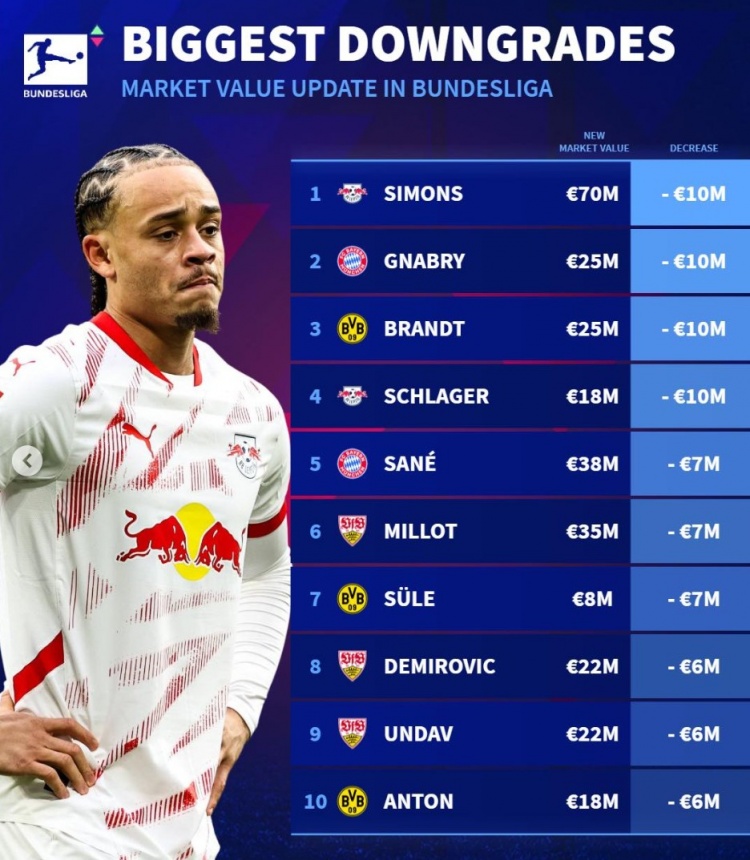 除特別注明外,本站所有內容均為九球直播整理排版,轉載請注明出處:德甲身價貶值榜:西蒙斯&格納布里下跌1000萬,薩內&聚勒降700萬
